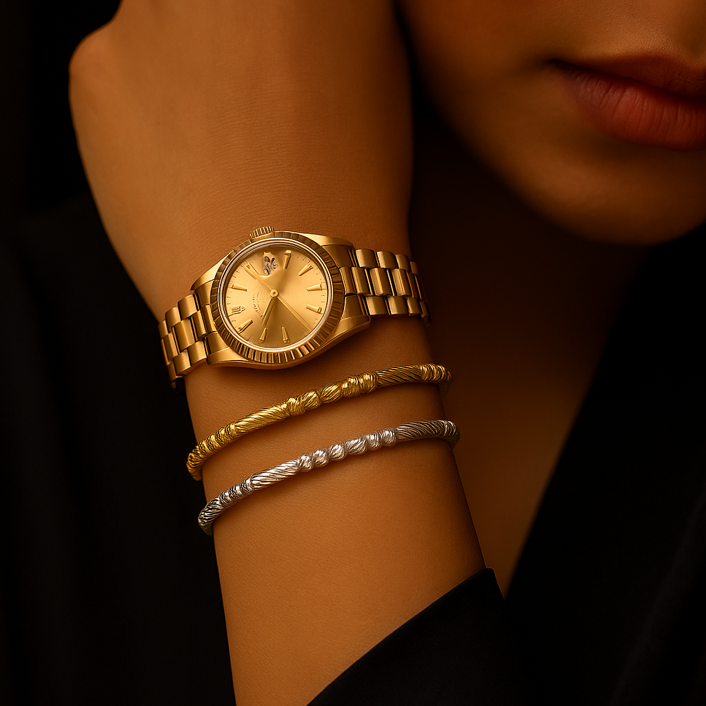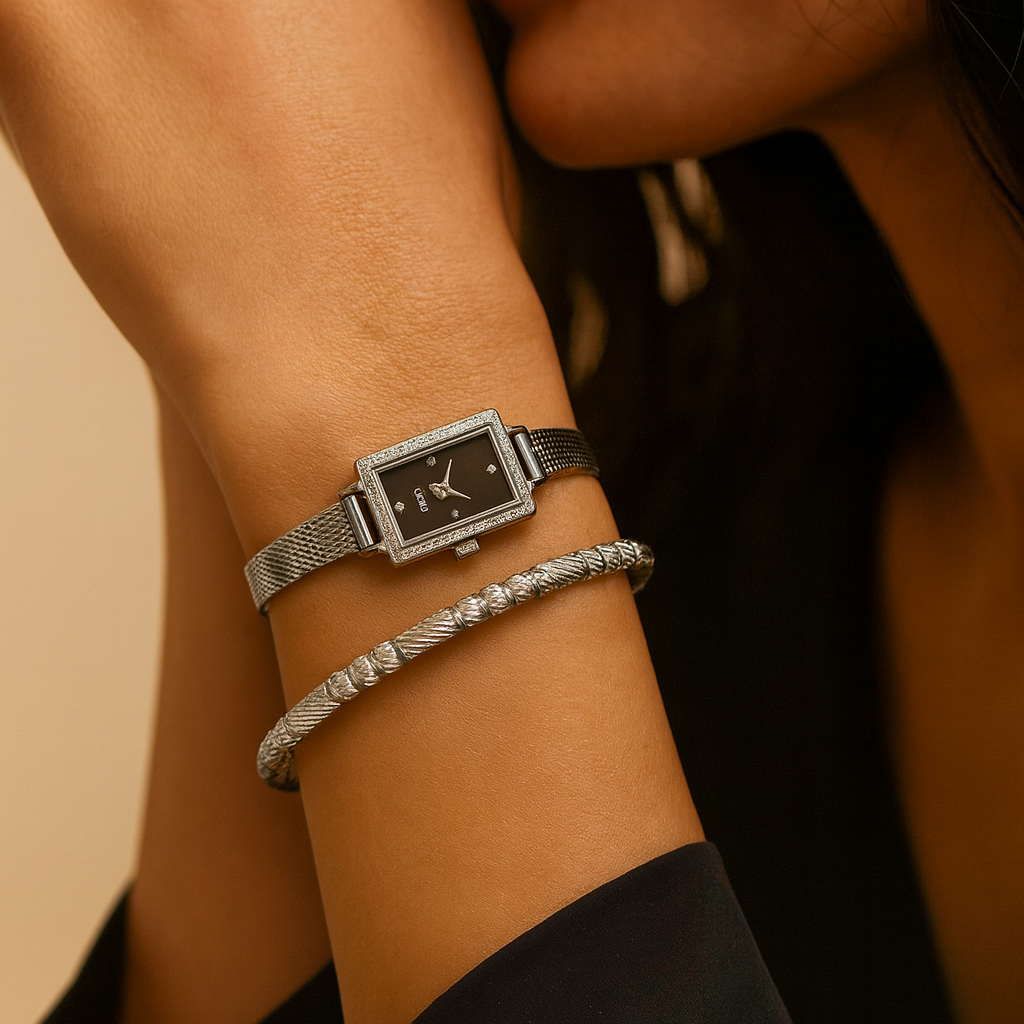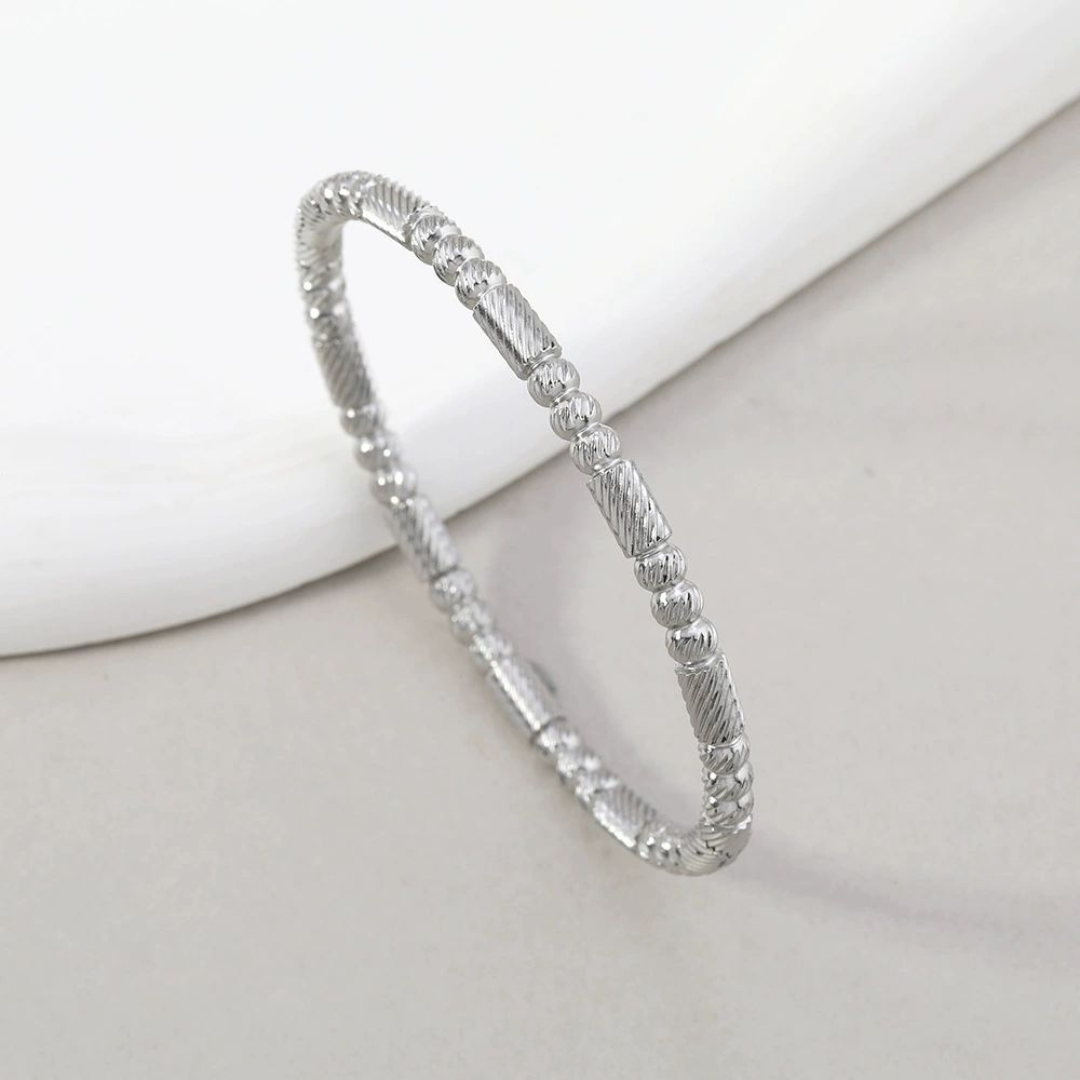 Redefine everyday elegance with the AuraFlex Bangle – designed to move with your style, from workday minimalism to evening glam.