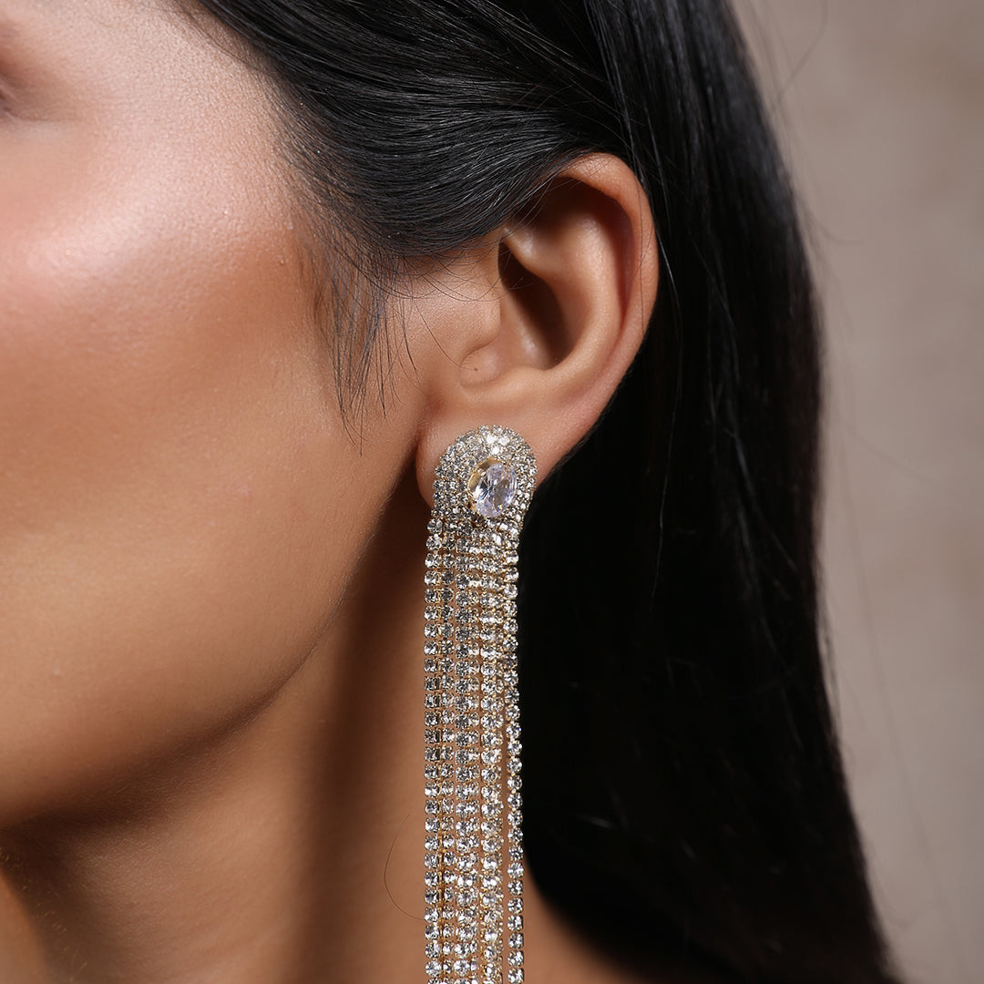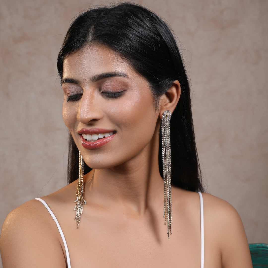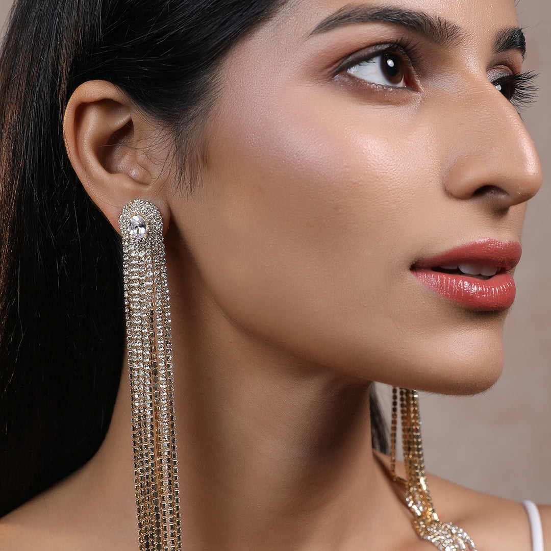 Turn every head in the room with these DivaGlint Crystal Tassel Earrings — a statement piece crafted to dazzle from every angle.