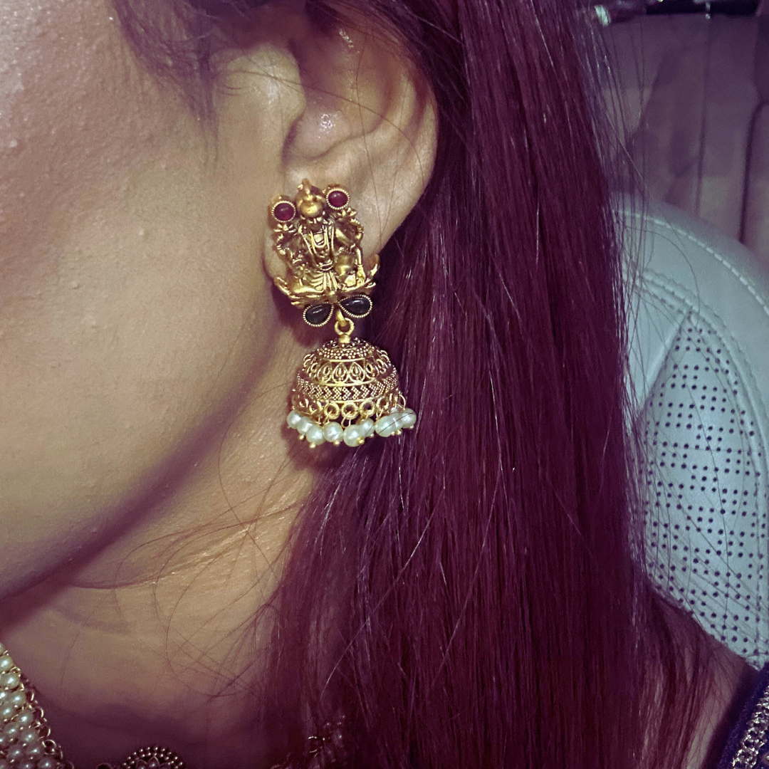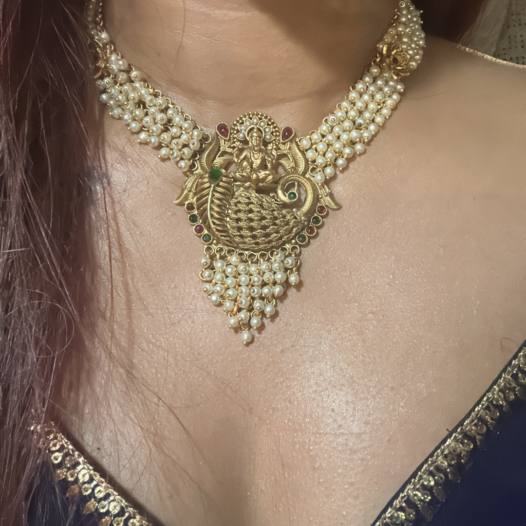 Step into timeless elegance with our Divine Lakshmi Temple Necklace Set, a masterpiece inspired by royal heritage and divine beauty.