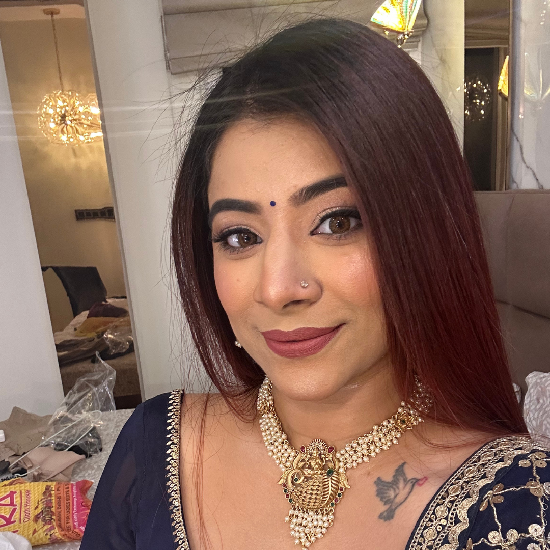 The intricately designed pearl layers and detailed craftsmanship reflect authentic South Indian temple artistry, while the beautiful matching jhumkas add a touch of regal charm to your traditional attire.
