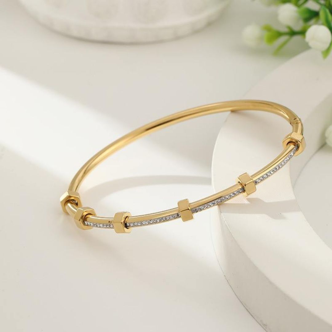 Crafted in durable stainless steel and finished with 18K gold plating, it’s accented with sparkling zircon stones that catch the light at every turn — just like you do.