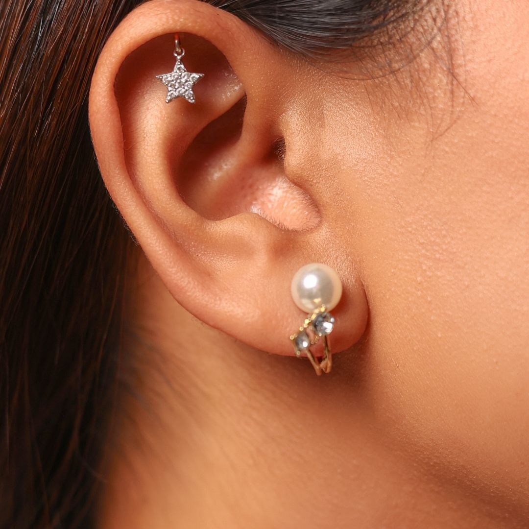 Gold Plated Korean AD and Pearl Quirky Stud Earrings