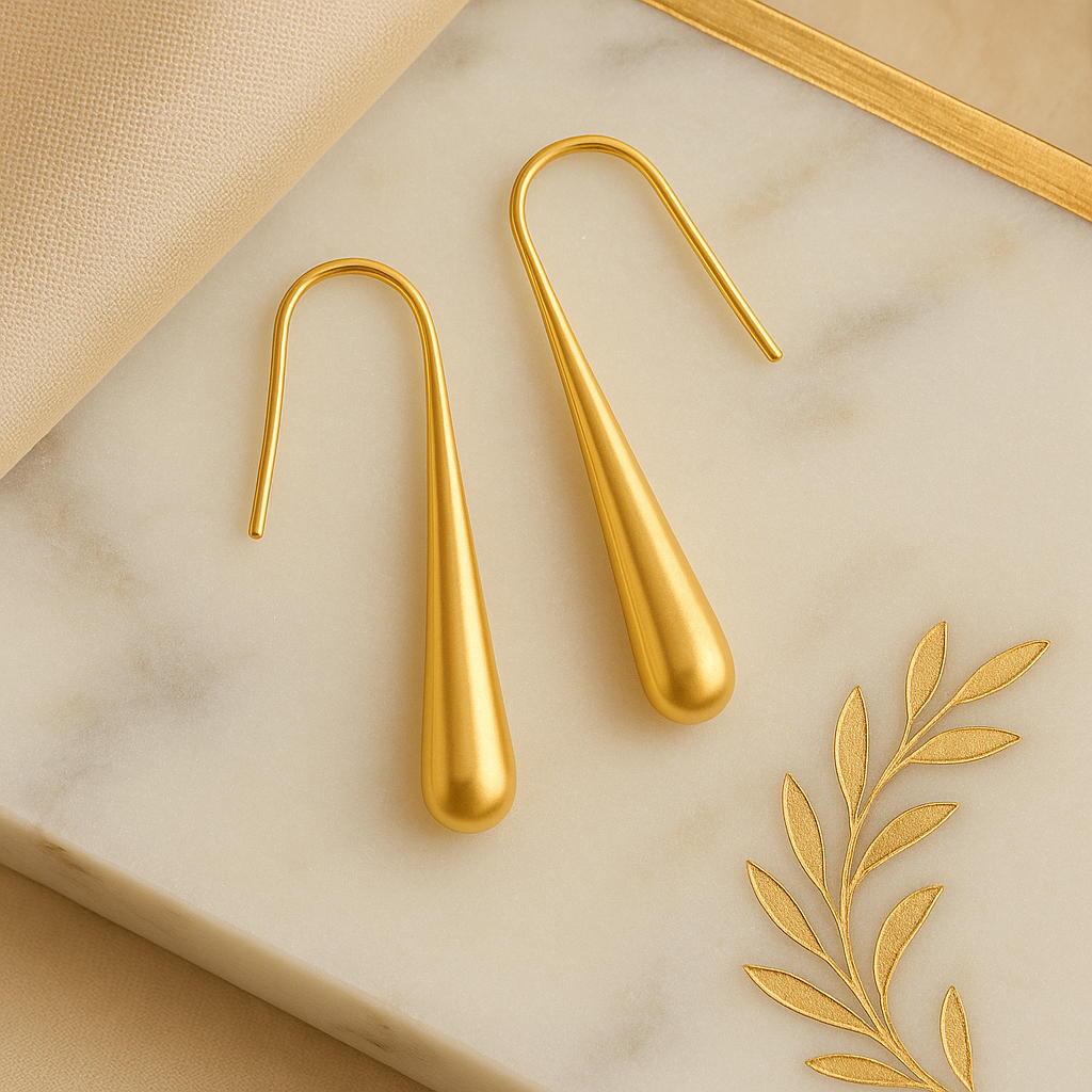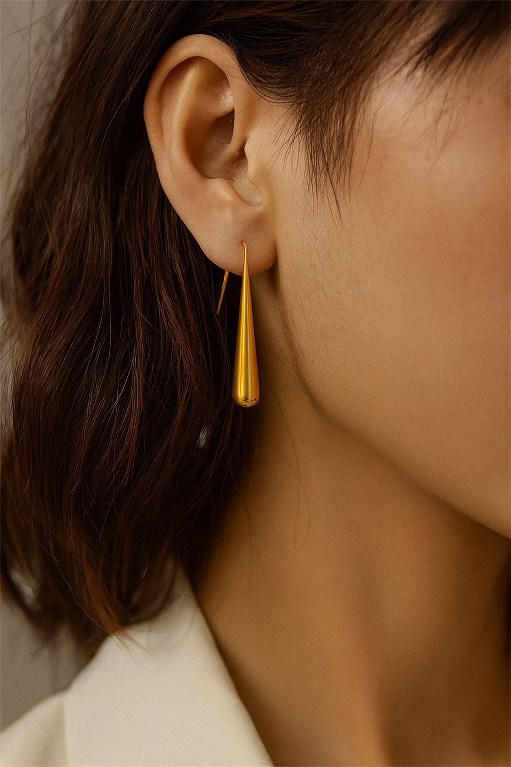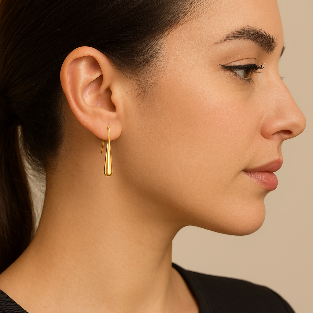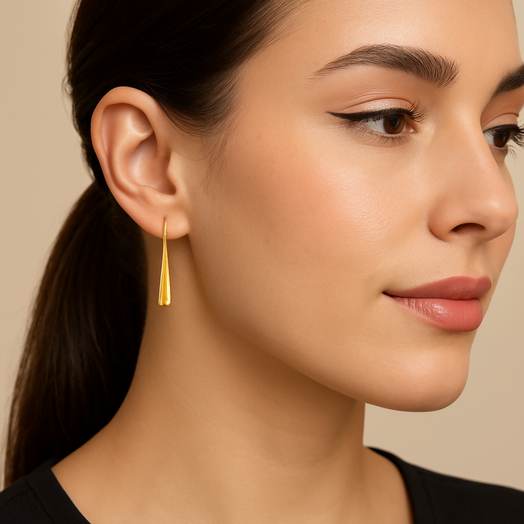 Sleek, sophisticated, and timeless – these 18K gold-plated stainless steel drop earrings are more than just jewellery; they’re a statement of class. Crafted with luxurious anti-tarnish stainless steel and a hypoallergenic finish, they’re designed for women who demand beauty that lasts.